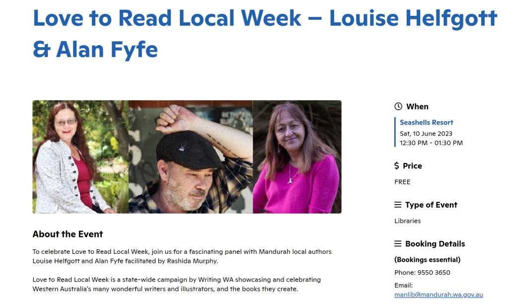 Saturday 10th June 2023: Panel discussion @ Seashells Resort, Mandurah. Tickets (free) available here