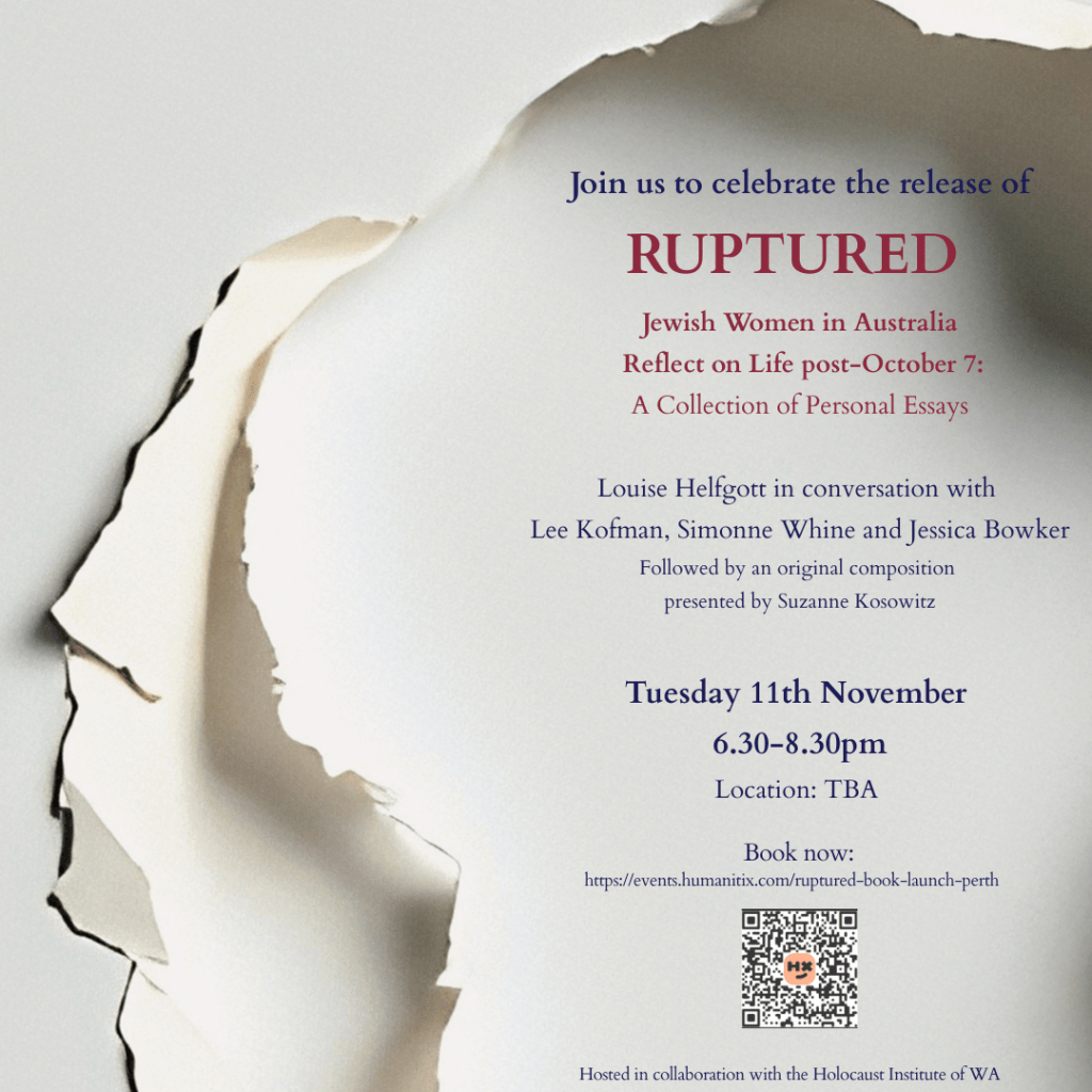Wednesday 14th June 2023: Author Q&A @ The Holocaust Institute of Western Australia. Tickets (free) available here